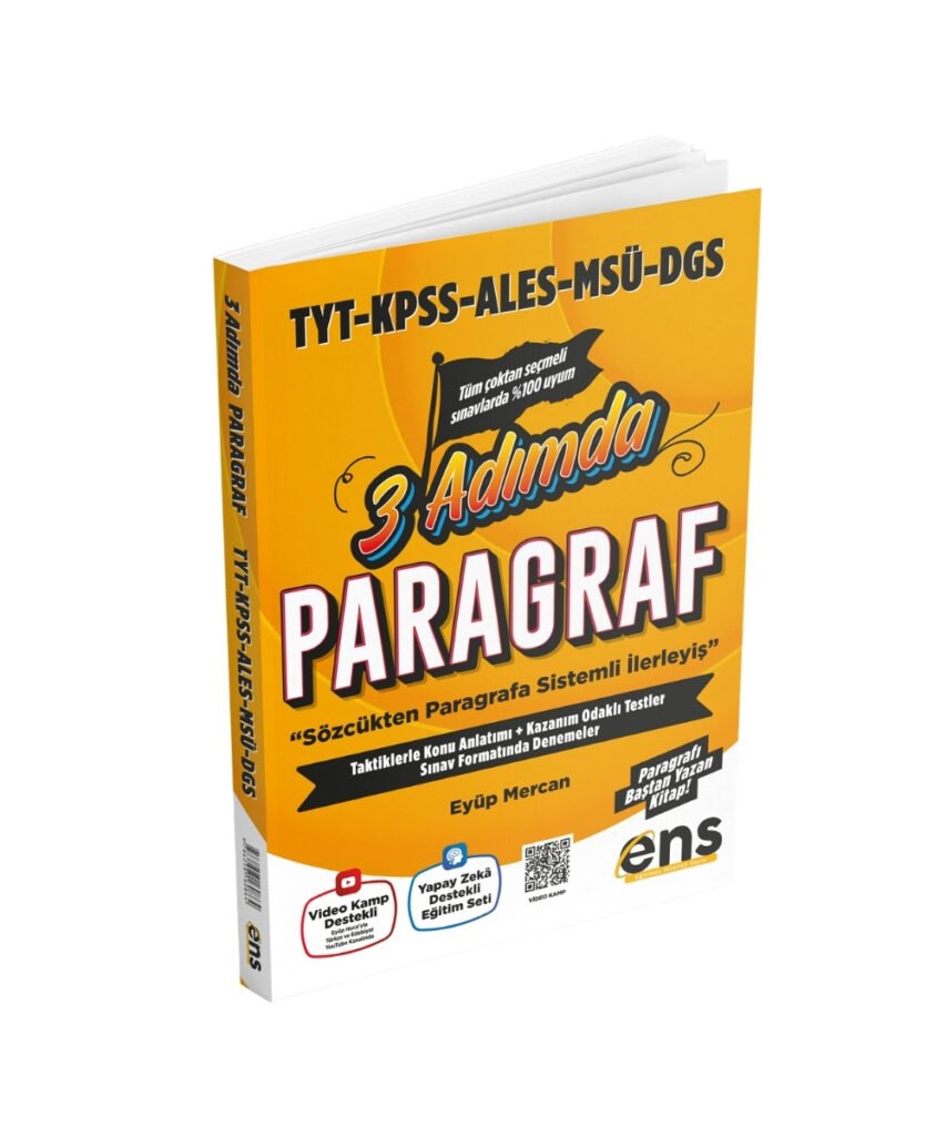 ENS Yayınları TYT, KPSS, ALES, MSÜ ve DGS Paragraf – 3 Adımda Konu Özetli Soru Bankası, konu anlatımı, kazanım odaklı testler ve sınav formatına uygun denemelerle öğrencileri adım adım başarıya taşır. Kitap, paragraf sorularında hız ve doğruluğu artırmak için kapsamlı bir çalışma sunar.
