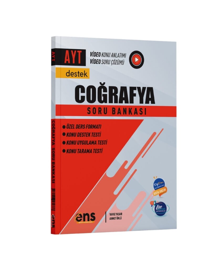 ENS Yayınları AYT Coğrafya Soru Bankası, konu anlatımı ve soru çözümünü bir araya getiren sistemli yapısıyla öğrencilerin konuları eksiksiz öğrenmesini sağlar. Video destekli içerikleri sayesinde öğrenme süreci daha anlaşılır, daha kalıcı ve daha verimli hale gelir.
